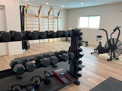 Private 24/7 gym with OxeFit AI robotics, Technogym, free weights, and zero crowds. Used for optimizing strength and longevity.